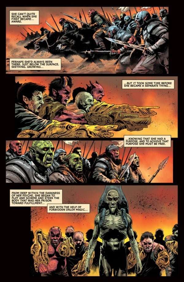 STOP THE APOCALYPSE, I WANT TO GET OFF! In this issue: Dark Vampirella has taken control! The Daughter of Drakulon is at war not only with herself, but with every denizen of Hell as well — allowing the Lords of Chaos and Order to escalate their battle to control the universe without interference! Prophetic pamphleteers TOM SNIEGOSKI and EDU MENNA keep the presses rolling with Vampirella: Armageddon #10 — augmented by audaciously alluring covers from FRANCESCO MATTINA, LESLEY “LEIRIX” LI, JOSEPH MICHAEL LINSNER, and cosplay by @DIZZYMSLIZZYY!